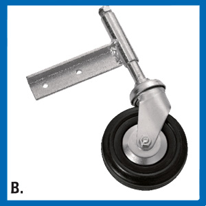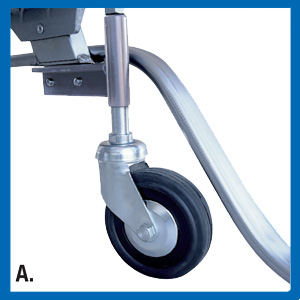 Sur demande, il est disponible dans la version SG/P, qui prévoit les 2 roues arrière fixes et l’ajout de 2 roues avant pivotantes avec ressort.
